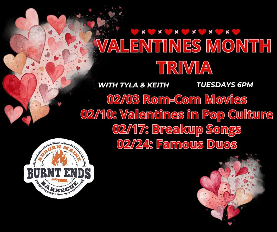 February is also packed with fun, starting with Valentine’s Month Trivia every Tuesday at 6PM, hosted by Tyla & Keith. Each week brings a new theme to keep things fresh and entertaining. We’re kicking things off with Rom-Com Movies on 02/03, followed by Valentines in Pop Culture on 02/10, Breakup Songs on 02/17, and wrapping up the month with Famous Duos on 02/24.